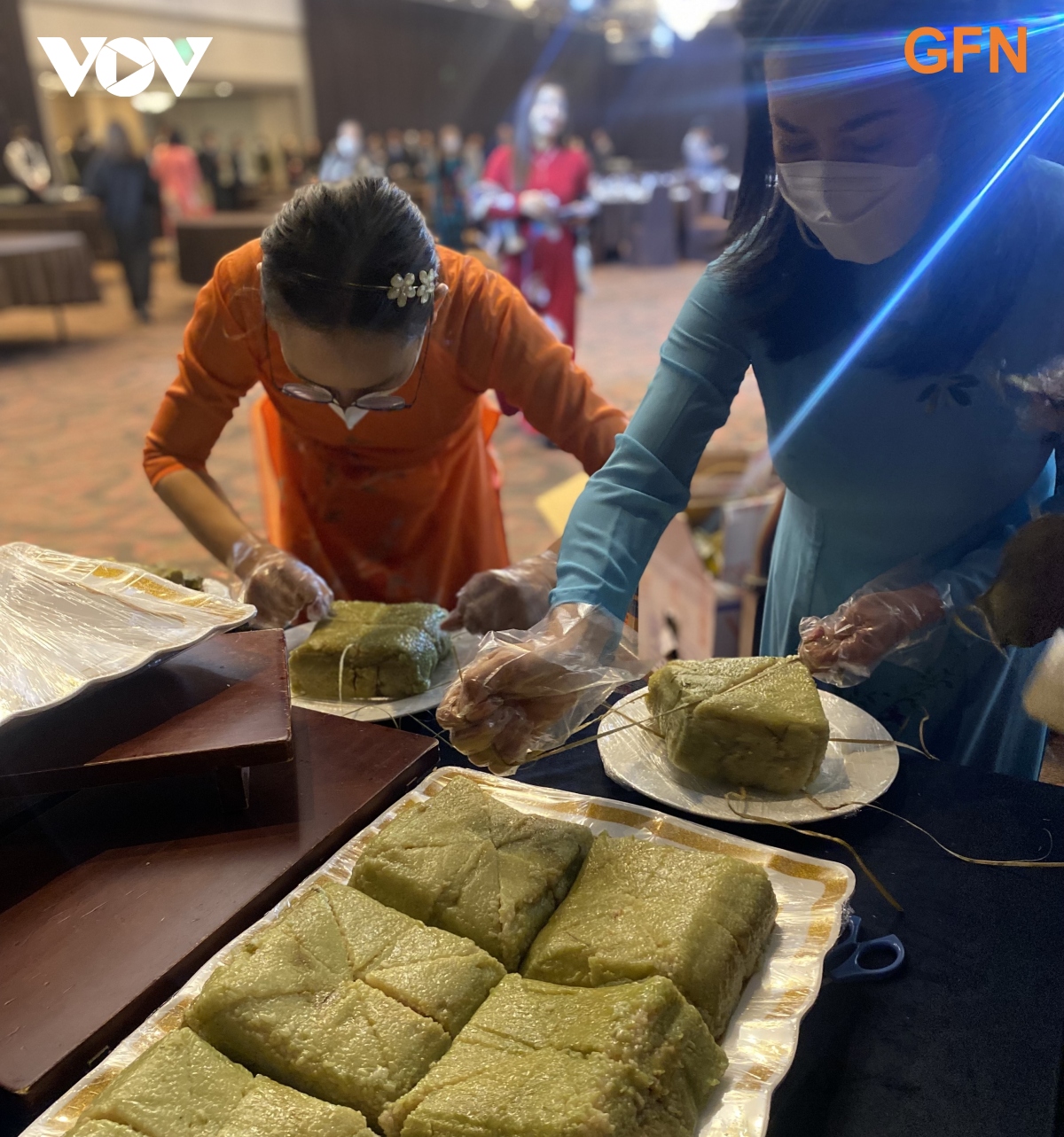 ເຂົ້າຕົ້ມແມ່ນສິ່ງທີ່ຂາດບໍ່ໄດ້ໃນບຸນເຕັດຂອງຊາວ ຫວຽດນາມອາໄສຢູ່ຕ່າງປະເທດ. (ພາບ:VOV)