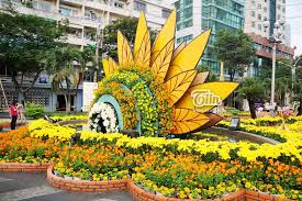 ສ່ວນ​ຢູ່​ນະຄອນ​ໂຮ່ຈີ​ມິນ, ບັນດາ​ຖະໜົນ​ຕົ້ນຕໍ​ຢູ່​ເຂດ​ໃຈກາງ, ສະໜາມ​ຫຼວງ, ບັນດາ​ຕຶກ​ອາຄານ​ຫຼາຍ​ຊັ້ນ​ກໍ່​ໄດ້​ຮັບ​ການ​ປະດັບ​ປະດາ​ດ້ວຍ​ດອກ​ໄຟ​ນາໆ​ສີ. ຖະໜົນ​ດອກ​ໄມ້​ຢູ່​ນະຄອນ​ໂຮ່ຈີ​ມິນ​ ​ໃນ​ປີ​ນີ້​ຖືກ​ຈັດ​ຕັ້ງ​ຢູ່​ຖະໜົນ​ຫ່າ​ມງີ (​ເມືອງ 1) ດ້ວຍ​ຫົວ​ຂໍ້​ວ່າ “ສີສັນ​ຫວຽດນາມ - ບັນຍາກາດ​ຫວຽດນາມ“. ປີ​ນີ້​ແມ່ນ​ປີ​ມະ​ແມ, ດັ່ງ​ຈຶ່ງ​ຖື​ເອົາ​ຮູບ​ໂຕ​ແບ້​ເປັນ​ແຫຼ່ງປະດິດ​ສ້າງ​ເປັນ​ຖະໜົນ​ດອກ​ໄມ້, ຫ້ວຍ​ດອກ​ໄມ້, ​ແມ່​ນຳ້​ດອກ​ໄມ້. ທ່ານ ​ເຈິ່ນບຽນ, ຊາວ​ນະຄອນ​ໂຮ່ຈີ​ມິນ, ​ໃຫ້​ຮູ້​ວ່າ: