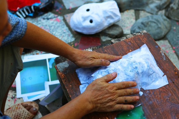 “ເຮັດໜ້າກາກຕ້ອງມີແບບ, ໜ້າກາກແຕ່ລະອັນມີແບບສະເພາະຂອງມັນ. ທຳອິດເຮົາຕ້ອງນຳເອົາເຈ້ຍໃສ່ແບບ, ທານ້ຳເຂົ້າແປ້ງໃສ່, ຫຼັງຈາກນັ້ນເອົາແກັດເຈ້ຍຕິດໃສ່, ຕໍ່ຈາກນັ້ນກໍ່ເອົາເຈ້ຍຂາວຕິດໃສ່, ເຮັດແບບນັ້ນຕິດຕໍ່ກັນໃຫ້ເປັນ 3 ຊັ້ນຈຶ່ງເປັນໜ້າກາກໄດ້. ຫຼັງຈາກນັ້ນເຮັດຂອບ, ສຸດທ້າຍແມ່ນຂັ້ນຕອນທາສີ, ແຕ້ມ ຈຶ່ງເປັນອັນວ່າໜ້າກາກໄດ້ສຳເລັດ. ເຮັດໜ້າກາກແມ່ນງ່າຍ, ສ່ວນເຮັດຫົວສິງໂຕຈະຍາກກວ່າຍ້ອນມີຫຼາຍຂັ້ນຕອນກວ່າ. ໃນບ້ານ, ມີຄອບຄົວເຮັດສະເພາະແຕ່ກອງ, ເຮັດກອບກອງ, ຜູ້ເຮັດໜ້າກາກ… ແຕ່ລະຄົນຈະເຮັດຂັ້ນຕອນໜຶ່ງ, ຖ້າຄອບຄົວໜຶ່ງເຮັດແຕ່ຕົ້ນຈົນສຳເລັດຜະລິດຕະພັນຈະບໍ່ບັນລຸປະສິດທິຜົນສູງ”.