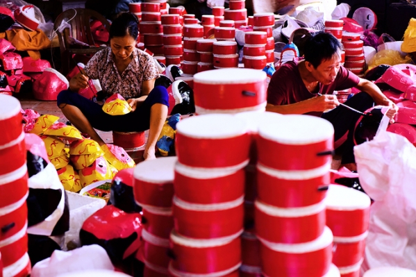 ເພື່ອເຮັດກອງມາຮັບໃຊ້ໃນງານບຸນໄຫວ້ພະຈັນໄດ້ອັນໜຶ່ງນັ້ນ, ປະຊາຊົນຢູ່ບ້ານຫາວ ໄດ້ຊື້ໜັງຄວາຍ, ງົວມາຈາກທ້ອງຖິ່ນອື່ນໆ. ກອງໄດ້ເຮັດດ້ວຍໄມ້ທີ່ເອົາມາຈາກປ່າ ຫຼື ໄມ້ໂພ ຍ້ອນໄມ້ຊະນິດນີ້ເຮັດງ່າຍກວ່າ, ລາຄາກໍ່ຖືກ, ເໝາະສົມກັບຕະຫຼາດເຄື່ອງຫຼິ້ນ. ສຳລັບບັນດາເຄື່ອງຫຼິ້ນທີ່ເປັນມູນເຊື້ອຄື: ໜ້າກາກ, ຕຸກກະຕາ, ຫົວສິງໂຕ… ໄດ້ເຮັດດ້ວຍເຈ້ຍ, ເຊິ່ງເອົາມາຈາກແກັດເຈ້ຍ, ໜັງສືພິມເກົ່າ. ບັນດາເຄື່ອງຫຼິ້ນດັ່ງກ່າວໄດ້ເຮັດດ້ວຍສີມືອັນຄ່ອງແຄ້ວຂອງປະຊາຊົນໃນບ້ານ. ປ້າ ຫວູທິຟູ໋ກ, ຊາວບ້ານຫາວ, ໃຫ້ຮູ້ວ່າ.