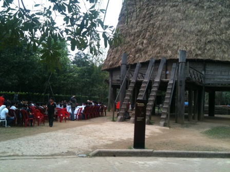 ງານພົບປະແລກປ່ຽນກັບຊາວບານາຖືກດຳເນີນຢູ່ເຂດເຮືອນຮົງໂດຍເຂົາເຈົ້າເປັນຜູ້ປຸກສ້າງຂຶ້ນ