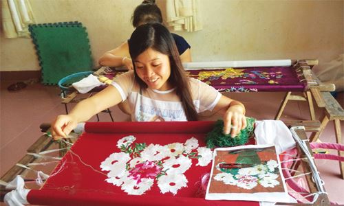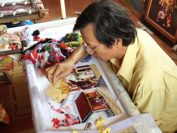 ຢູ່ ກວົດດົ້ງ, ຕົ້ນຊຸມປີ 90 ມີຫຼາຍໂຮງງານ. ສຳລັບໂຮງງານໃຫຍ່ມີຊ່າງປັກແສ່ວແຕ່ 200 – 500 ຄົນ. ຕາມກົດເກນແຫ່ງຊີວິດການເປັນຢູ່ແລ້ວ, ເມື່ອກ້າວເຂົ້າສູ່ພື້ນຖານເສດຖະກິດການຕະຫຼາດ, ມີບາງໄລຍະ, ຄິດວ່າໝູ່ບ້ານຈະຖືກເສື່ອມຫາຍໄປ, ແຕ່ປະຊາຊົນບ້ານ ກວົດດົ້ງ ຍັງຄົງເດັດດ່ຽວຮັກສາອາຊີບຂອງຕົນໄວ້. ປະຈຸບັນ, ຄອບຄົວໃດກໍ່ມີ 2-3 ຄົນເຮັດອາຊີບນີ້. ເຮືອນຂອງນັກສິລະປະ ຫງວຽນທິຮົ່ງ ກວ້າງພຽງ 30 ຕາແມັດເທົ່ານັ້ນ, ແຕ່ເທິງຝາເຮືອນພັດແຂວນຮູບປັກແສ່ວນາໆຊະນິດ. ປ້າ ຮົ່ງ ແບ່ງປັນວ່າ: