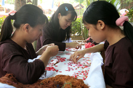 “ ຂ້າພະເຈົ້າຮຽນອາຊີບປັກແສ່ວນີ້ນັບແຕ່ເມື່ອມີອາຍຸ 8 ປີ. ບັນດາພວກຫຼານນ້ອຍໃນໝູ່ບ້ານເມື່ອມີອາຍຸ 7-8 ປີລ້ວນແຕ່ໄດ້ຮຽນປັກແສ່ວ, ຍ້ອນເຫດນັ້ນໝູ່ບ້ານຂອງພວກຂ້າພະເຈົ້າຈຶ່ງຮັກສາໄດ້ອາຊີບທີ່ເປັນມູນເຊື້ອນີ້.“