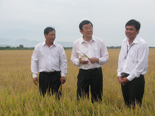 ທ່ານປະທານປະເທດ Trương Tấn Sangໄປຢ້ຽມຢາມທົ່ງນາຂອງຕາແສງເຟືອກເຮົ້າ
