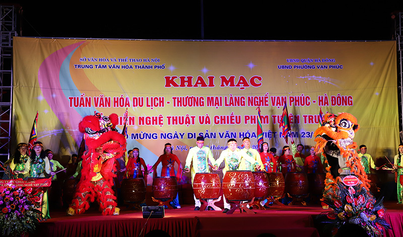 ການສະແດງລາຍການສິລະປະທີ່ຟົດຟື້ນໃນພິທີໄຂສັບປະດາວັດທະນະທຳ, ທ່ອງທ່ຽວ, ການຄ້າ ໝູ່ບ້ານຫັດຖະກຳ ຫວ້ານຟຸກ (ພາບ: hanoimoi.com.vn) |