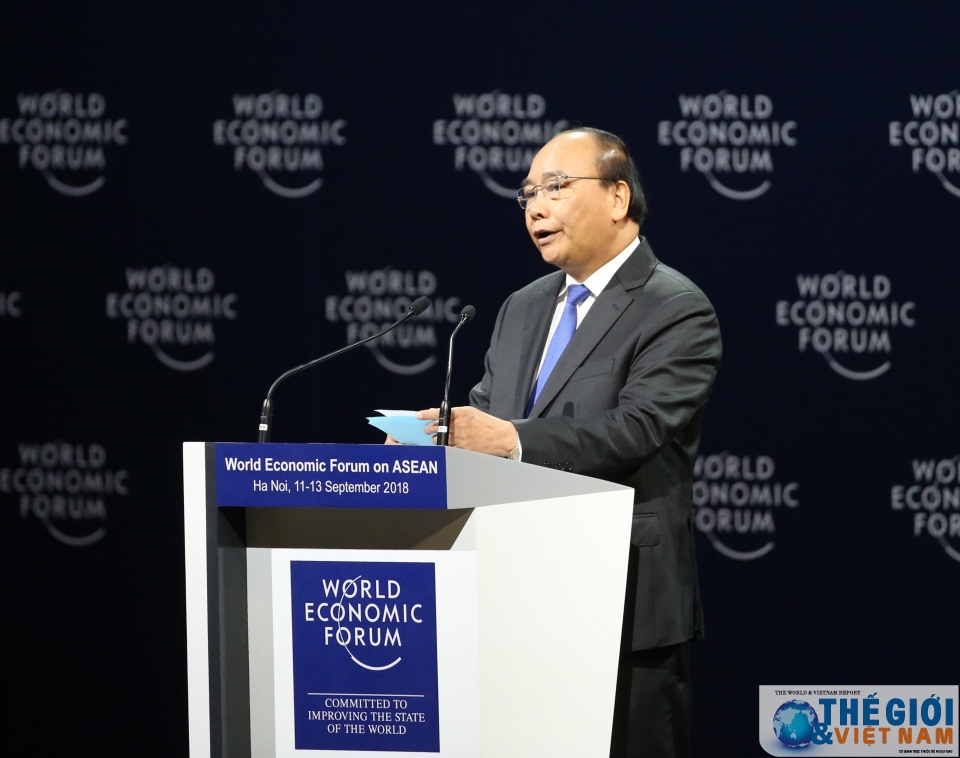 ທ່ານນາຍົກລັດຖະມົນຕີ ຫງວຽນຊວນຟຸກ ກ່າວຄໍາເຫັນທີ່ກອງປະຊຸມWEF ASEAN 2018 (ພາບ: baoquocte.vn) |