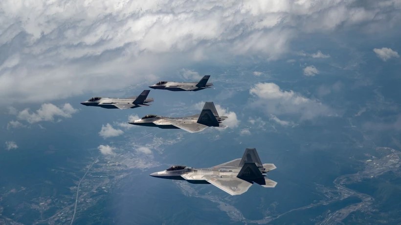 ເຮືອບິນ F-35A ຂອງ ສ.ເກົາຫຼີ ແລະ F-22 ຂອງ ອາເມລິກາ (ພາບ: Yonhap/TTXVN) |
