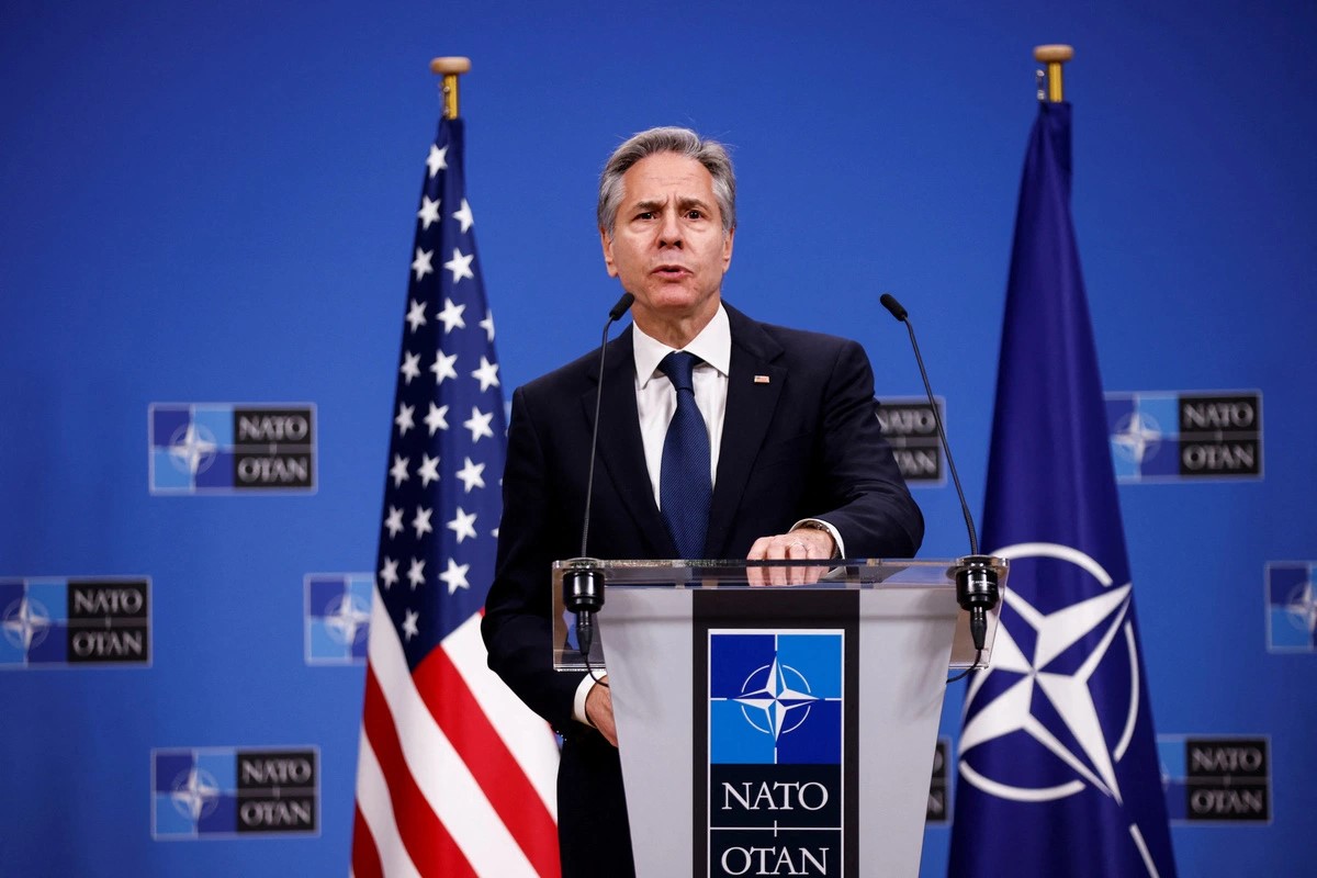 ທ່ານລັດຖະມົນຕີການຕ່າງປະເທດ ອາເມລິກາ Antony Blinken ກ່າວຄຳເຫັນໃນການຖະແຫຼງຂ່າວ ຢູ່ ສຳນັກງານ NATO ໃນວັນທີ 4/12 (ພາບ: Reuters) |