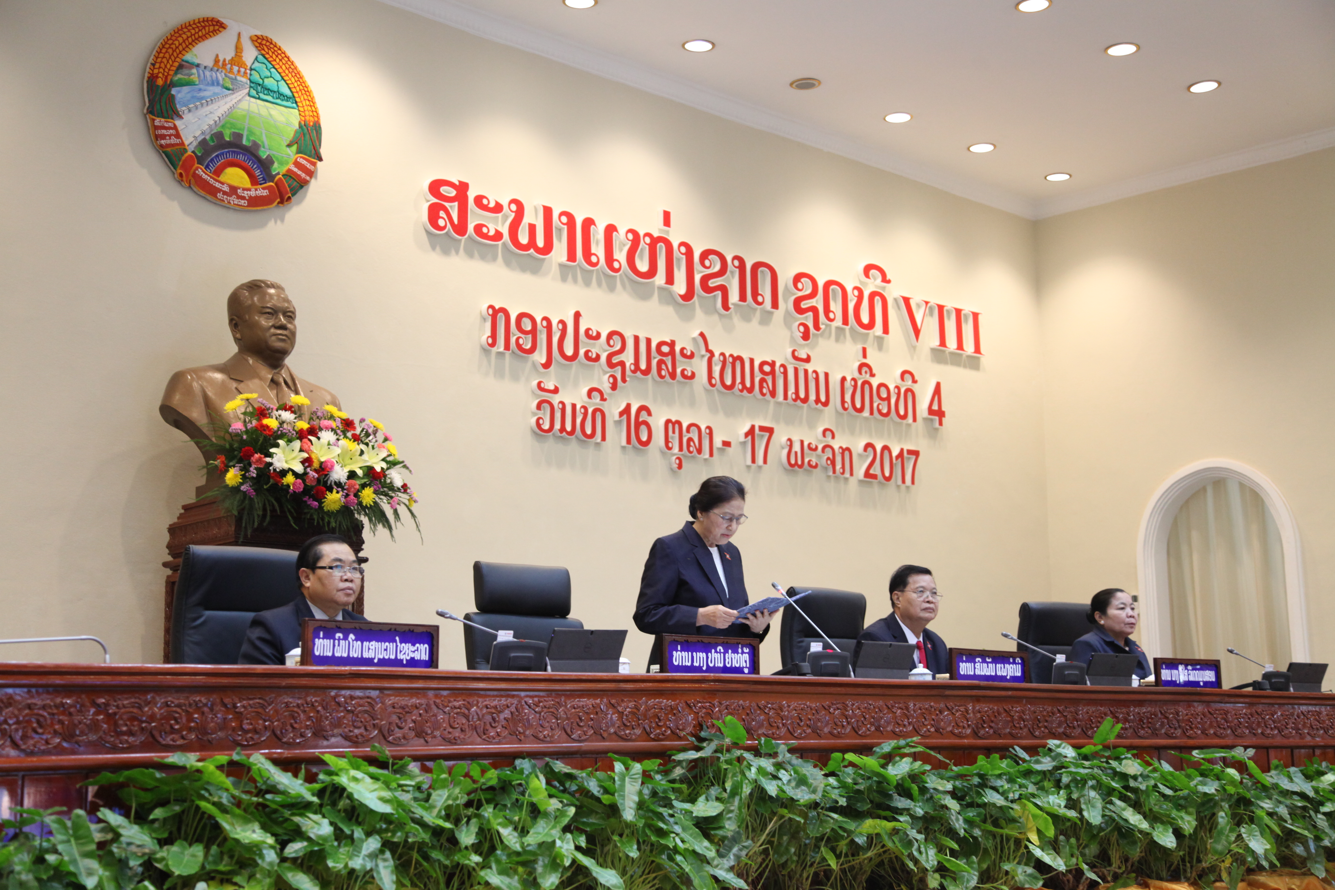 (VOVWORLD) - ກອງປະຊຸມສະໄໝສາມັນເທື່ອທີ 4 ສະພາແຫ່ງຊາດ ລາວ ຊຸດທີ 8 ດຳເນີນແຕ່ວັນທີ 16 ຕຸລາ - 17 ພະຈິກ ຢູ່ນະຄອນຫລວງ ວຽງຈັນ ລາວ.