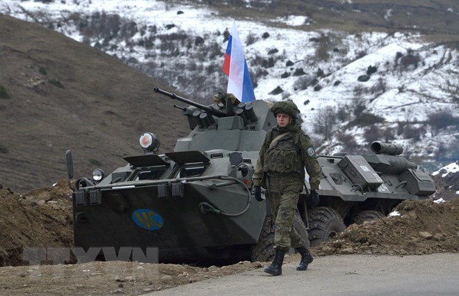 ທະຫານຮັກສາສັນຕິພາບ ລັດເຊຍ ປະຈຳການຢູ່ເຂດຂັດແຍ້ງ Nagorny-Karabakh ວັນທີ 26/11/2020 (ພາບ: AFP/TTXVN) |