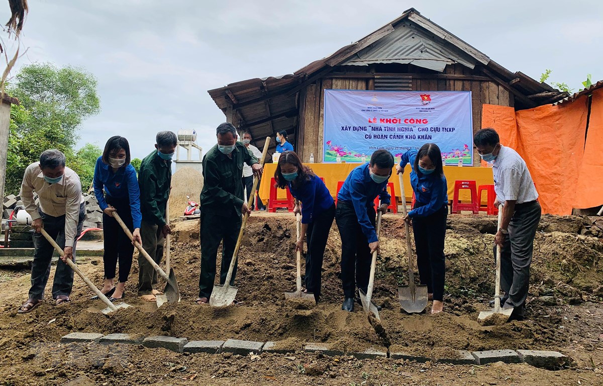 ພິທີລົງມືກໍ່ສ້າງເຮືອນແຫ່ງສາຍຈິດມິດໃຈໃຫ້ແກ່ອະດີດຊາວໜຸ່ມຕະລຸມບອນ ທີ່ປະສົບກັບຄວາມຫຍຸ້ງຍາກ (ພາບ: TTXVN) |