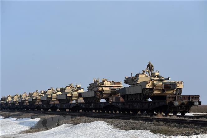 ອຸປະກອນການທະຫານຂອງກອງທັບ ອາເມລິກາ ໄດ້ຂົນສົ່ງໄປຍັງ ຖານທີ່ໝັ້ນ Mihail Kogalniceanu ໃກ້ກັບເຂດ Constanta ຢູ່ ຣູມານີ (ພາບ: AFP/TTXVN) |