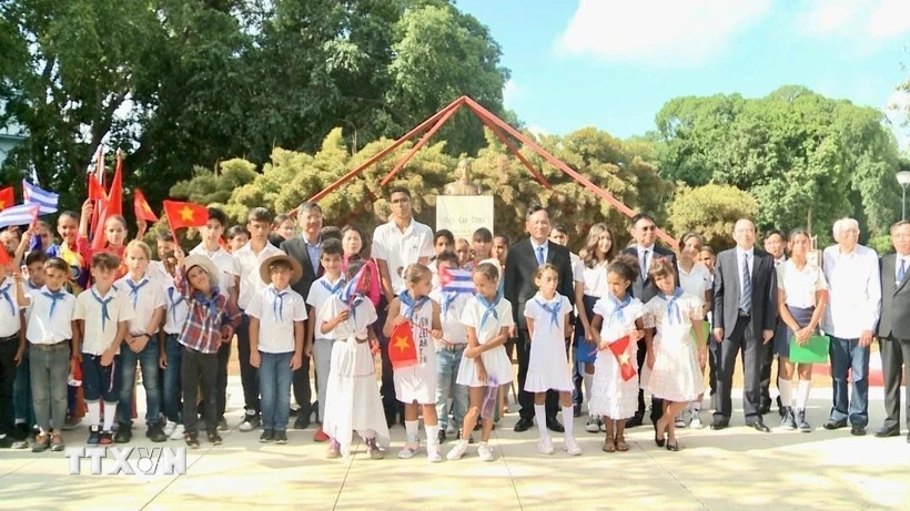ພິທີວາງພວງມາລາ ຢູ່ສວນສາທາລະນະ ປະທານ ໂຮ່ຈີມິນ ຢູ່ນະຄອນຫຼວງ La Habana (ພາບ: TTXVN)