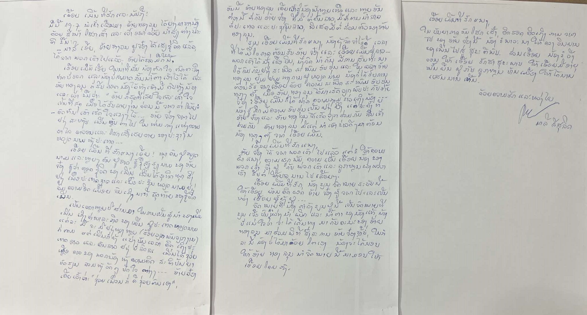 ຈົດໝາຍທີ່ນ້ອງກຳລັງຂຽນຢູ່ນີ້, ເປັນຈົດໝາຍທີ່ຂຽນ ເຈືອປົນນ້ຳເມິກ ແລະນ້ຳຕາຂອງນ້ອງແທ້ໆ ນ້ອງບໍ່ແນໃຈວ່າ ຈະໄດ້ເດີນທາງມາກັບຄະນະຂອງອ້າຍທອງລຸນ ມາຮ່ວມພິທີສົ່ງສະການອ້າຍຈ້ອງຫຼືບໍ່, ໃນກໍລະນີ ນ້ອງບໍ່ໄດ້ດ້ວຍຕົນເອງນ້ອງຈະໄດ້ມອບໃຫ້ ອ້າຍທອງລຸນ ນຳຈົດໝາຍນີ້ມາມອບໃຫ້ເອື້ອຍໂດຍກົງ.
