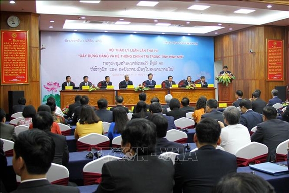 ພິທີອັດກອງປະຊຸມສຳມະນາທິດສະດີຄັ້ງທີ VII ລະຫວ່າງພັກກອມມູນິດ ຫວຽດນາມ ແລະ ພັກປະຊາຊົນປະຕິວັດ ລາວ (ພາບ: TTXVN) |