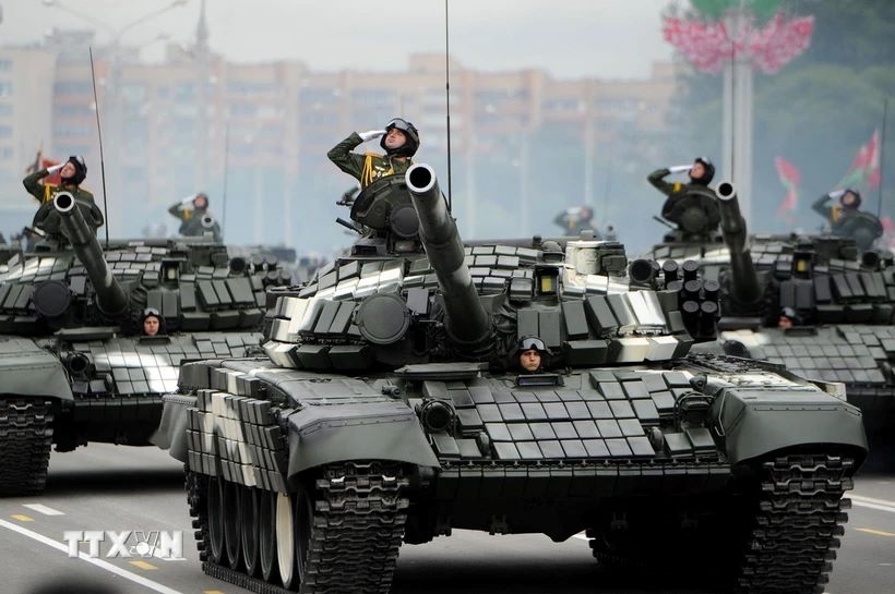 ນາຍທະຫານ ເບລາຣຸດ ເຂົ້າຮ່ວມພິທີເດີນສວນສະໜາມຢູ່ນະຄອນຫຼວງ Minsk (ພາບ: AFP/TTXVN) |