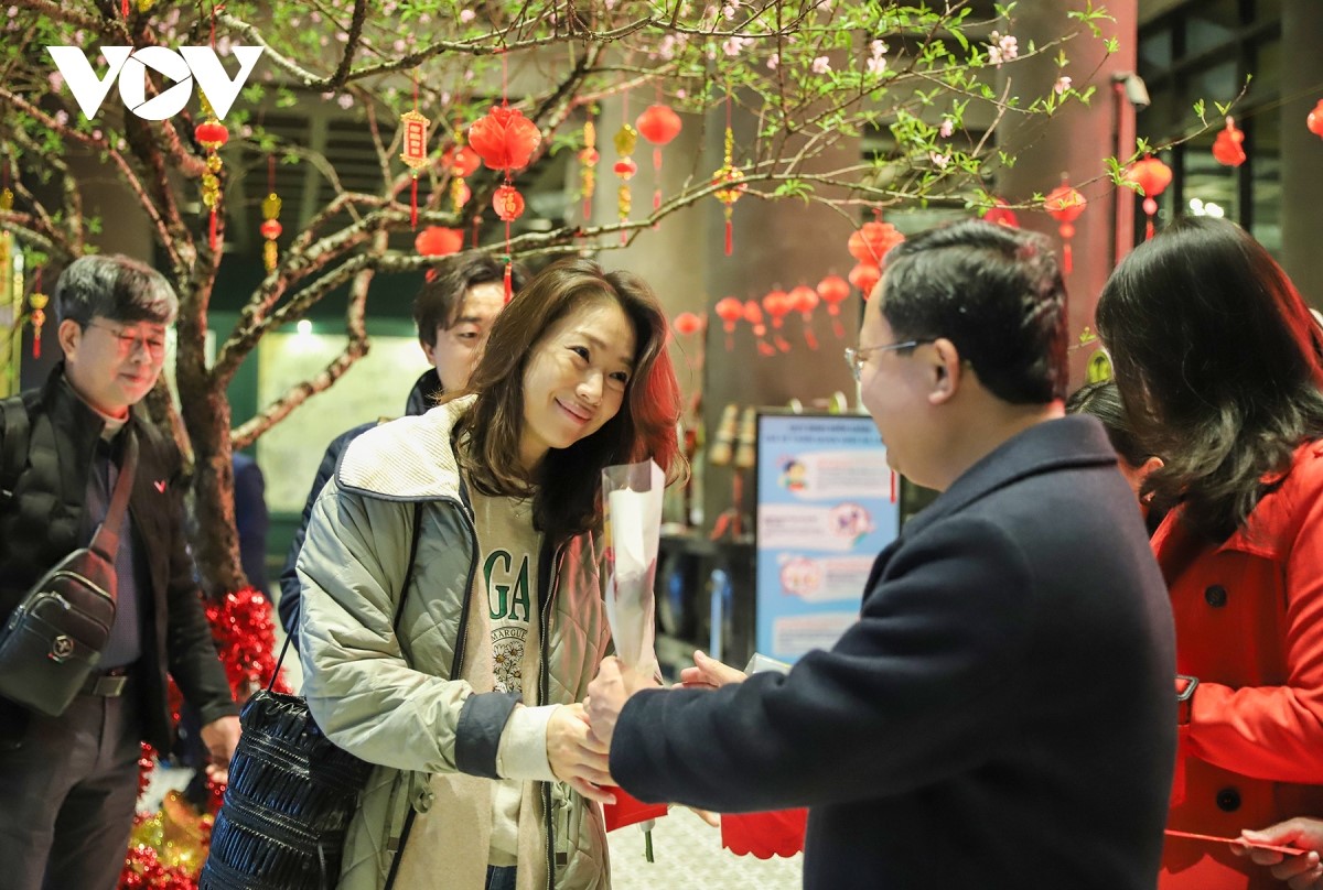 ຄະນະແຂກທຳອິດຂອງປີໃໝ່ ປີມະໂລງທີ່ມີ 298 ຄົນໄດ້ມາຮອດທ່າກຳປັ່ນແຂກສາກົນ ຮ້າລອງ ໃນບັນຍາດຟືດຟື້ນຂອງການຟ້ອນສິງໂຕ ແລະ ເຕັ່ມໄປດ້ວຍສີແດງຂອງດອກຄາຍ. ທ່ານ ກາວເຕືອງຮຸຍ ປະທານຄະນະກຳມະການ ປຊຊ ແຂວງ ກວາງນິງ ໄດ້ມີໜ້ານັບແຕ່ເຊົ້າ ເພື່ອຕ້ອຍຮັບແຂກຜູ້ທຳອິດ, ມອບດອກໄມ້ ແລະ ອັ່ງເປົາເງິນໂຊກດີ ຕາມຮີດຄອງປະເພນີຂອງຊາວ ຫວຽດນາມ ພ້ອມດ້ວຍບັນດາຄຳອວຍພອນປີໃໝ່…ຄາດວ່າ, ໃນວັນທີ 1 ຂອງບຸນເຕັດ, ຈະມີແຂກປະມານກ່ວາ 4000 ເມື່ອຄົນຂຶ້ນກຳປັ່ນ ໄປຢ້ຽມຊົມ ອ່າວ ຮ້າລອງ.