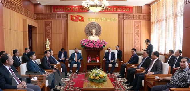 ເນື່ອງໃນໂອກາດສະເຫຼີມສະຫຼອງ 60 ປີແຫ່ງວັນສ້າງຕັ້ງສາຍພົວພັນທາງການທູດ (5/9/1962 - 5/9/2022), ແລະ 45 ປີແຫ່ງວັນເຊັນສົນທິສັນຍາມິດຕະພາບ ແລະ ການຮ່ວມມືຫວຽດນາມ-ລາວ (18/7/1977 - 18/7/2022), ວັນທີ 22 ສິງຫາ, ທ່ານຟານຫວຽດເກື່ອງ, ເລຂາຄະນະພັກແຂວງກວາງນາມ ໄດ້ໃຫ້ການຕ້ອນຮັບຄະນະປະຕິບັດງານແຂວງອັດຕະປື ໂດຍທ່ານ ເລັດ ໄຊຍະພອນ ເລຂາຄະນະພັກ, ເຈົ້າແຂວງອັດຕະປື ເປັນຫົວໜ້າຄະນະ ຊື່ງພວມຢູ່ຢ້ຽມຢາມ ແລະ ເຮັດວຽກຢູ່ແຂວງກວາງນາມ. ທ່ານເລຂາຄະນະພັກແຂວງກວາງນາມ ຟານຫວຽດເກື່ອງ ໃຫ້ຮູ້ວ່າ, ໃນປີຜ່ານມາ, ສອງແຂວງກວາງນາມ ແລະ ອັດຕະປື ລ້ວນແຕ່ຖືກຜົນສະທ້ອນຈາກໂລກລະບາດໂຄວິດ 19. ມາຮອດປະຈຸບັນ, ໂລກລະບາດໄດ້ຮັບການຄວບຄຸມໂດຍພື້ນຖານແລ້ວ, ບັນດາການເຄື່ອນໄຫວຜະລິດພວມໄດ້ຮັບການຟື້ນຟູຢ່າງແຮງ. ໃນ 6 ເດືອນຕົ້ນປີ 2022, ແຂວງກວາງນາມ ໄດ້ຮັບງົບປະມານກ່ວາ 1 ຕື້ USD, ສຳລັດແຜນການໂດຍສູນກາງມອບໝາຍໃຫ້. ທາງແຂວງສືບຕໍ່ພັດທະນາບັນດາສູນທ່ອງທ່ອຽວ, ອຸດສາຫະກຳ ແລະ logistics. ກວາງນາມ ປາດຖະໜາວ່າ ສອງແຂວງຈະຄົ້ນຄ້ວາເພື່ອສົມທົບກັນ, ຊອກຮູ້ການຮ່ວມມືລົງທຶນເພື່ອພ້ອມກັນພັດທະນາ. ແຂວງອັດຕະປື ພວມຮຽກຮ້ອງບໍລິສັດ ທາໂກ ເຈື່ອງຫາຍ ລົງທຶນເຂົ້າໃນຂົງເຂດລ້ຽງງົວ ແລະ ປູກຕົ້ນໄມ້ກິນໝາກ….