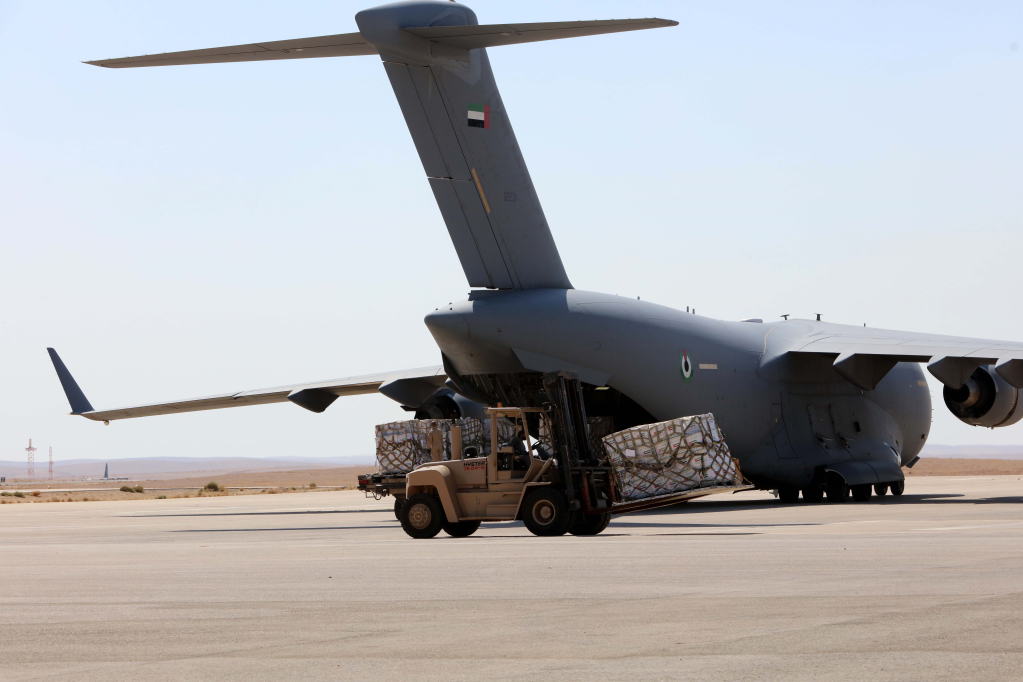 ເຮືອບິນຂົນສົ່ງເຄື່ອງຊ່ວຍເຫຼືອ ໄປຍັງເຂດກາຊາ (ພາບ: THX/TTXVN) |