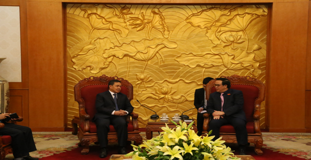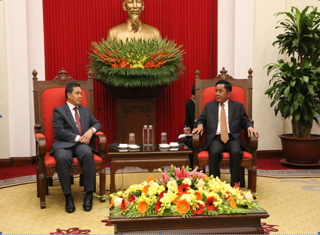 ທ່ານ ຫວງບີ່ງກວນ ຫົວໜ້າຄະນະພົວພັນຕ່າງປະເທດສູນກາງພັກ ຄອມມູນິດ ຫວຽດນາມ ຕ້ອນຮັບ ທ່ານ ແສງເພັດ ຮຸ່ງບຸນຍວງ ເອກອັກຄະລັດຖະທູດ ແຫ່ງ ສປປ.ລາວ ປະຈໍາຫວຽດນາມ |