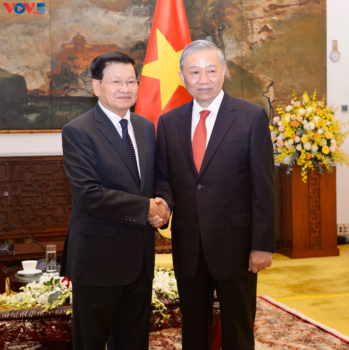 ນະທີ່ນີ້, ທ່ານເລຂາທິການໃຫຍ່ ໂຕເລິມ ໄດ້ເນັ້ນໜັກວ່າ ຫວຽດນາມ ຈະເຮັດຈົນສຸດຄວາມສາມາດຂອງຕົນ ພ້ອມກັບລາວ ເພື່ອເພີ່ມພູນຄູນສ້າງ, ປົກປັກຮັກສາສາຍພົວພັນ ຫວຽດນາມ - ລາວ ໃຫ້ນັບມື້ນັບພັດທະນາຢ່າງໝັ້ນແກ່ນ, ເກີດດອກອອກຜົນ, ເພື່ອຜົນປະໂຫຍດຂອງປະຊາຊົນແຕ່ລະປະເທດ, ເພື່ອສັນຕິພາບ, ເອກະລາດ, ປະຊາທິປະໄຕ ແລະ ຄວາມກ້າວໜ້າຂອງພາກພື້ນ ແລະ ໃນໂລກ. ທ່ານເລຂາທິການໃຫຍ່ຢັ້ງຢືນວ່າ ສອງປະເທດ ເຄີຍຄຽງບ່າຄຽງໄຫຼ່ຕໍ່ສູ້ຍາດເອົາເອກະລາດ, ປົດປ່ອຍຊາດໃນເມື່ອກ່ອນແລ້ວ, ປັດຈຸບັນ ກໍຈະສືບຕໍ່ໜູນຊ່ວຍກັນພັດທະນາເສດຖະກິດ - ສັງຄົມ.