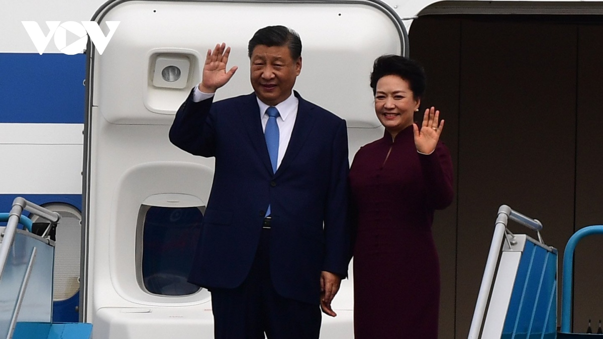 ທ່ານເລຂາທິການໃຫຍ່ ພັກຄອມມູນິດ ຈີນ, ປະທານປະເທດ ແຫ່ງສາທາລະນະລັດ ປະຊາຊົນ ຈີນ ສີຈີ້ນຜິງ ພ້ອມດ້ວຍພັນລະຍາ ເດີນທາງມາຮອດນະຄອນຫຼວງ ຮ່າໂນ້ຍ (ພາບ: VOV) |