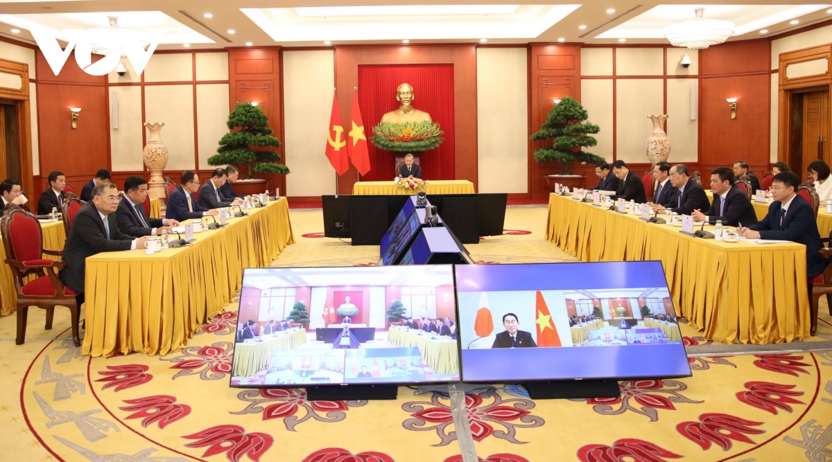 ໃນການໂອ້ລົມສົນທະນາ, ການນຳສອງທ່ານຕ່າງກໍສະແດງຄວາມປະຕິຊົມຊື່ນກ່ຽວກັບການພັດທະນາຢ່າງແຮງ, ວ່ອງໄວ ແລະ ຮອບດ້ານໃນການພົວພັນສອງຝ່າຍ. ສອງຝ່າຍເຫັນດີສືບຕໍ່ເພີ່ມທະວີຄວາມໄວ້ເນື້ອເຊື່ອໃຈດ້ານການເມືອງ, ຄວາມເຂົ້າໃຈເຊິ່ງກັນ ແລະ ກັນ ແລະ ຮັບຮອງເອົາການຮັກສາການແລກປ່ຽນຄະນະຜູ້ແທນຂັ້ນສູງ ດ້ວຍຫຼາຍຮູບແບບທີ່ແຕກຕ່າງກັນຢ່າງມີໄຫວພິບ, ເສີມຂະຫຍາຍບັນດາກົນໄກເຈລະຈາ, ຮ່ວມມືສອງຝ່າຍໃຫ້ມີປະສິດທິຜົນ. ທ່ານນາຍົກລັດຖະມົນຕີ ຍີ່ປຸ່ນ Fumio Kishida ເນັ້ນໜັກວ່າ ຍີ່ປຸ່ນ ຈະສືບຕໍ່ປະກອບສ່ວນເຂົ້າໃນການພັດທະນາຂອງ ຫວຽດນາມ ຜ່ານການຊ່ວຍເຫຼືອພັດທະນາຢ່າງເປັນທາງການ (ODA), ເພີ່ມທະວີການຮ່ວມມືກັບ ຫວຽດນາມ ໃນການຫັນເປັນດີຈີຕອນ, ຫັນເປັນສີຂຽວ, ກໍ່ສ້າງແຫຼ່ງຊັບພະຍາກອນມະນຸດມີຄຸນນະພາບສູງ.