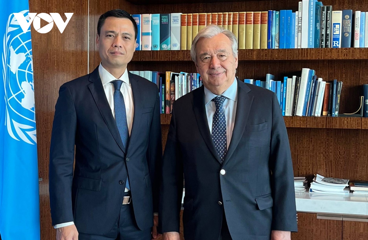ທ່ານເອກອັກຄະລັດຖະທູດ ດັ້ງຮ່ວາງຢາງ ຫົວໜ້າຄະນະຜູ້ຕາງໜ້າ ຫວຽດນາມ ປະຈຳ ສປຊ ແລະ ທ່ານເລຂາທິການໃຫຍ່ ສປຊ Antonio Guterres |