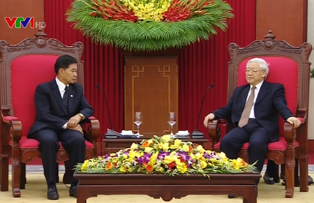 ![]() ທ່ານ ສິນລະວົງ ຄຸດໄພທູນ, ເລຂາຄະນະພັກ, ເຈົ້າຄອງນະຄອນຫຼວງ ວຽງຈັນ ແລະ ທ່ານເລຂາທິການໃຫຍ່ ຫງວຽນຟູ໋ຈ້ອງ