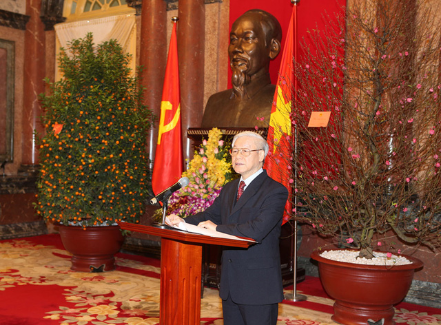 (vovworld) - ວັນທີ 03/02, ໃນບັນຍາກາດທົ່ວປະເທດຕ້ອນຮັບລະດູບານໃໝ່, ອວຍພອນພັກກອມມູນິດ ຫວຽດນາມ ຄົບຮອບ 86 ປີແຫ່ງວັນສ້າງຕັ້ງ, ທ່ານເລຂາທິການໃຫຍ່ ຫງວຽນຟູຈ້ອງ ອວຍພອນບຸນເຕັດບັນດານັກປະຕິວັດຜູ້ອາວຸໂສ, ບັນດາການນຳ ແລະ ອະດີດການນຳພັກ, ລັດ, ແນວໂຮມປະເທດຊາດ ຫວຽດນາມ, ພະນັກງານການນຳຂອງບັນດາອົງການສຳນັກງານສູນກາງ ແລະ ຮ່າໂນ້ຍ. ທ່ານເລຂາທິການໃຫຍ່ ຫງວຽນຟູຈ້ອງ ເນັ້ນໜັກວ່າ: ໃນສະພາວະສະພາບການໂລກ ແລະ ພາຍໃນປະເທດປະສົບກັບຄວາມຫຍຸ້ງຍາກ, ສິ່ງທ້າທາຍຫລາຍຢ່າງ ແຕ່ດ້ວຍຄວາມມານະພະຍາຍາມ, ສູ້ຊົນຂອງທົ່ວພັກ, ທົ່ວກອງທັບ ແລະ ທົ່ວປວງຊົນ, ຫວຽດນາມ ບັນລຸໄດ້ບັນດາໝາກຜົນສຳຄັນ, ສະພາບການເສດຖະກິດ - ສັງຄົມສືບຕໍ່ມີບັນດາການຫັນປ່ຽນຢ່າງຕັ້ງໜ້າ, ບັນລຸໄດ້ຫລາຍໝາກຜົນພໍສົມຄວນໃນບັນດາຂົງເຂດ. ປີ 2016 ແມ່ນປີທຳອິດປະຕິບັດມະຕິກອງປະຊຸມໃຫຍ່ຄັ້ງທີ 12 ຂອງພັກ ແລະ ແຜນການພັດທະນາເສດຖະກິດ - ສັງຄົມ 5 ປີ 2016 – 2020. ທົ່ວພັກ, ທົ່ວປວງຊົນ ຫວຽດນາມ ມານະພະຍາຍາມສູ້ຊົນຢາງສູງ, ເພື່ອສຳເລັດໜ້າທີ່ຂອງປີ 2016 ຢ່າງມີໄຊ. ທ່ານເລຂາທິການໃຫຍ່ ຫງວຽນຟູຈ້ອງ ເນັ້ນໜັກວ່າ: