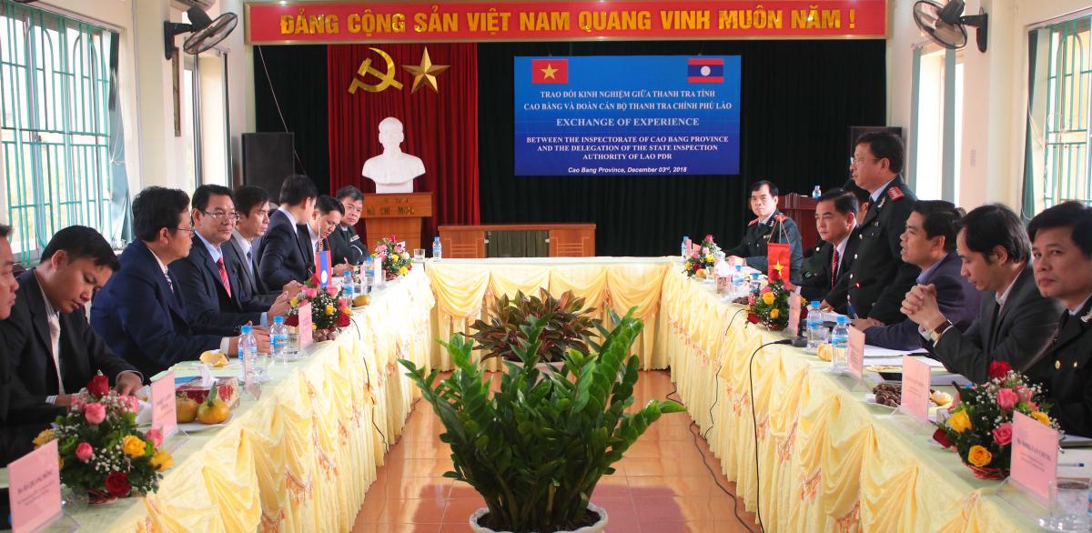 ການເຮັດວຽກລະຫວ່າງຄະນະພະນັກງານກວດກາລັດຖະບານລາວ ແລະ ພະແນກກວດກາ ແຂວງກາວບັງ, ຫວຽດນາມ (ພາບ: caobang.gov.vn) |