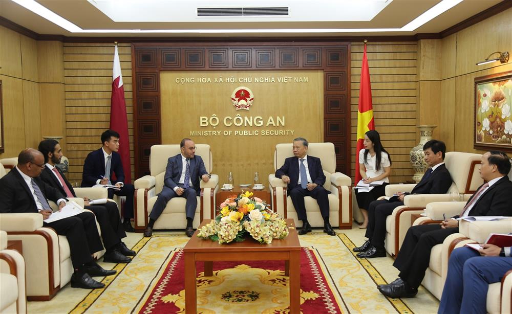 ທ່ານພົນເອກ ໂຕເລິມ ຕ້ອນຮັບທ່ານເອກອັກຄະລັດຖະທູດ ກາຕາ ປະຈຳ ຫວຽດນາມ Khalid Ali Abdullah Abel(ພາບ: bocongan.gov.vn)