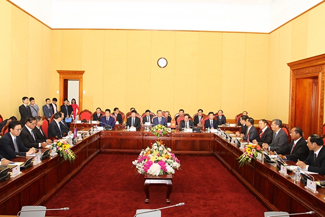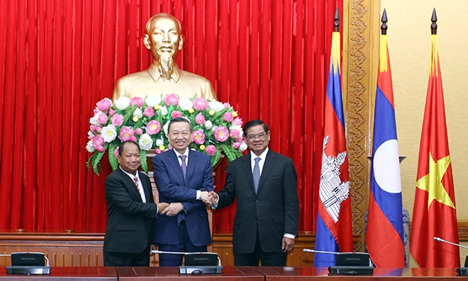 ກ່າວຄຳເຫັນທີ່ເຫດການ, ທ່ານລັດຖະມົນຕີກະຊວງຕຳຫລວດ ຫວຽດນາມ ໂຕເລີມ ໄດ້ຢືນຢັນວ່າ: ກຳລັງປ້ອງກັນຄວາມສະຫງົບລາວ ແລະ ກຳລັງຕຳຫລວດ ກຳປູເຈຍ ຍາມໃດກໍ່ສະຫງວນໃຫ້ກຳລັງຕຳຫລວດປະຊາຊົນ ຫວຽດນາມ ການຮ່ວມມື, ຊ່ວຍເຫລືອຢ່າງສຸດຈິດສຸດໃຈ, ມີປະສິດທິຜົນໃນພາລະກິດປົກປັກຮັກສາຄວາມສະຫງົບປອດໄພແຫ່ງຊາດ, ຮັກສາຄວາມເປັນລະບຽບຮຽບຮ້ອຍ, ຄວາມປອດໄພທາງສັງຄົມ. ໃນສະພາບການເຊື່ອມໂຍງເຂົ້າກັບສາກົນຂອງບັນດາປະເທດ ປະຈຸບັນ ນັບມື້ນັບເລິກເຊິ່ງກວ້າງຂວາງນັ້ນ, ການສົມທົບຢ່າງແຫນ້ນແຟ້ນລະຫວ່າງກຳລັງຕຳຫລວດ ປະຊາຊົນ ຫວຽດນາມ ກັບກຳລັງປ້ອງກັນຄວາມສະຫງົບລາວ ແລະ ກຳລັງຕຳຫລວດ ກຳປູເຈຍ ແມ່ນປັດໄຈສຳຄັນ ເພື່ອປົກປັກຮັກສາຄວາມສະຫງົບປອດໄພແຫ່ງຊາດ ແລະ ຄວາມເປັນລະບຽບຮຽບຮ້ອຍ, ຄວາມປອດໄພທາງສັງຄົມຢູ່ແຕ່ລະປະເທດ. ທີ່ການພົບປະ, ທ່ານຮອງນາຍົກລັດຖະມົນຕີ, ທັງເປັນລັດຖະມົນຕີກະຊວງພາຍໃນ ກຳປູເຈຍ Sar Kheng ແລະ ພົນຕີ ສົມແກ້ວ ສີລະວົງ, ລັດຖະມົນຕີກະຊວງປ້ອງກັນຄວາມສະຫງົບລາວ ປາດຖະຫນາວ່າ ໃນໄລຍະຈະມາເຖິງ ການພົວພັນຮ່ວມມືລະຫວ່າງກຳລັງຕຳຫລວດ ແລະ ກຳລັງປ້ອງກັນຄວາມສະຫງົບ 3 ປະເທດ ສືບຕໍ່ພັດທະນາ, ບັນລຸໄດ້ໝາກຜົນຫລາຍຢ່າງໃນບັນດາຂົງເຂດຮ່ວມມື, ປະກອບສ່ວນຮັກສາຄວາມເປັນລະບຽບຮຽບຮ້ອຍ, ຄວາມປອດໄພທາງສັງຄົມ, ຮັບປະກັນຄວາມສະຫງົບປອດໄພແຫ່ງຊາດຂອງສາມປະເທດ.