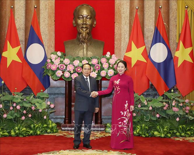 ທ່ານນາງຮອງປະທານປະເທດ ຫວໍທິແອັງຊວັນ ພົບປະເຈລະຈາກັບທ່ານຮອງປະທານປະເທດ ລາວ ບຸນທອງ ຈິດມະນີ (ພາບ: TTXVN) |