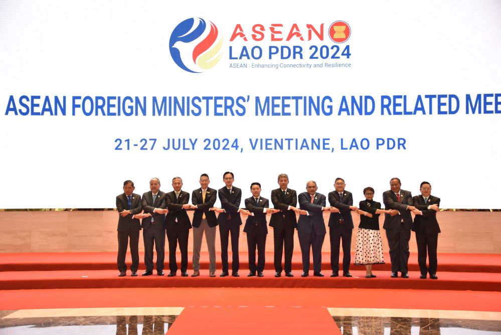 ໂດຍສືບຕໍ່ການເຄື່ອນໄຫວຂອງບັນດາລັດຖະມົນຕີການຕ່າງປະເທດອາຊຽນ, ວັນທີ 25 ກໍລະກົດ, ຢູ່ຫໍປະຊຸມແຫ່ງຊາດ, ທີ່ນະຄອນຫຼວງ ວຽງຈັນ, ປະເທດ ລາວ, ໄດ້ຈັດກອງປະຊຸມລັດຖະມົນຕີການຕ່າງປະເທດ ອາຊຽນ ຄັ້ງທີ 57 ດ້ວຍຫົວຂໍ້ “ອາຊຽນ: ເພີ່ມທະວີການເຊື່ອມຈອດ ແລະ ຄວາມເຂັ້ມແຂງຂອງ ອາຊຽນ”. ທ່ານຮອງນາຍົກລັດຖະມົນຕີການຕ່າງປະເທດ ຫວຽດນາມ ໂດ້ຮຸ່ງຫວຽດ, ຫົວໜ້າ SOM ASEAN ຂອງ ຫວຽດນາມ, ນຳໜ້າຄະນະຜູ້ແທນ ຫວຽດນາມ ເຂົ້າຮ່ວມກອງປະຊຸມ.