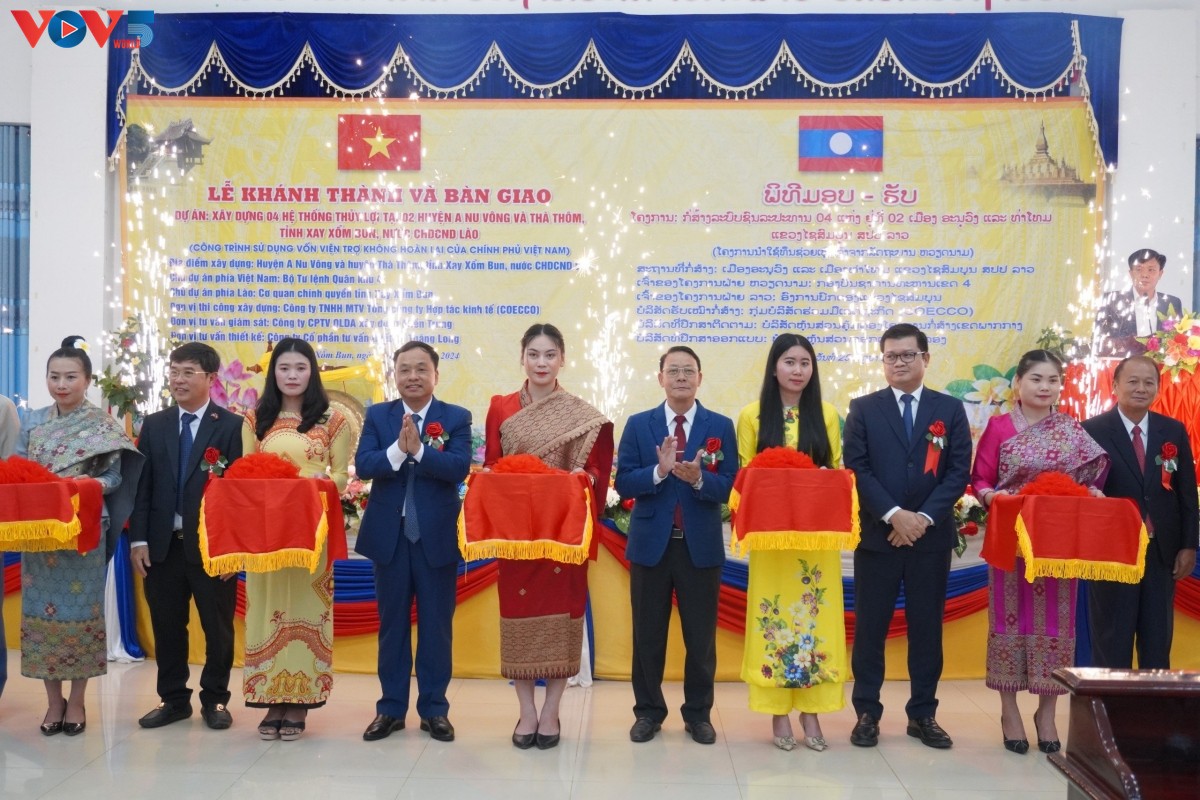 ພິທີເປີດນຳໃຊ້ແລະ ມອບ - ຮັບໂຄງການກໍ່ສ້າງ 04 ລະບົບຊົນລະປະທານ ຢູ່ແຂວງ ໄຊສົມບູນ (ພາບ: VOV) |