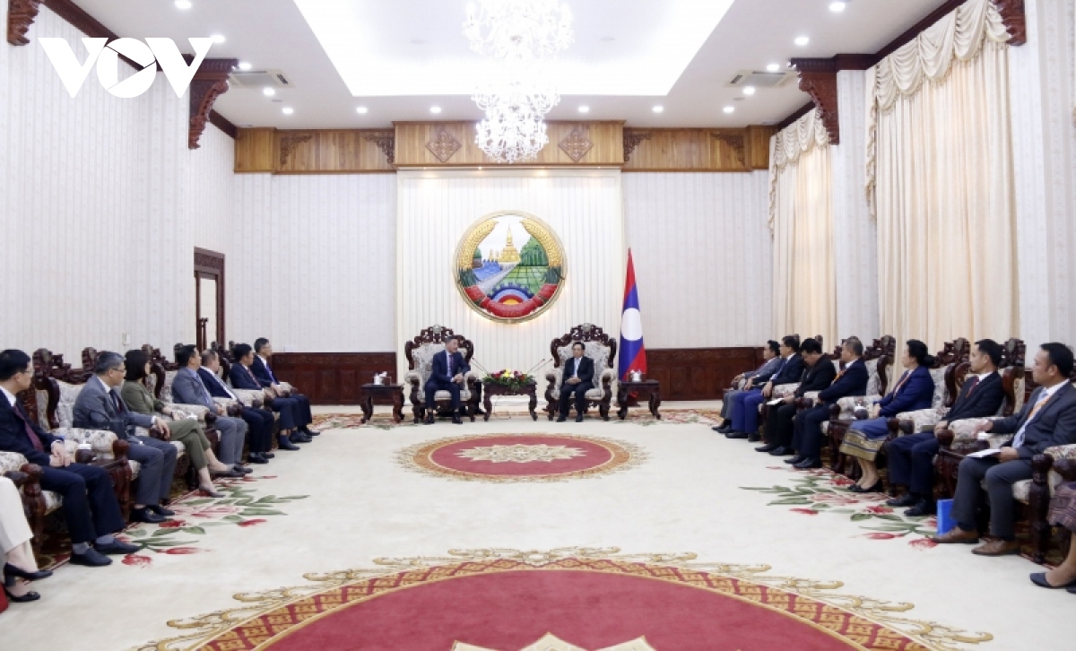 ທ່ານນາຍົກລັດຖະມົນຕີ ພັນຄຳ ວິພາວັນ ເຮັດວຽກກັບຄະນະ(ພາບ:VOV)