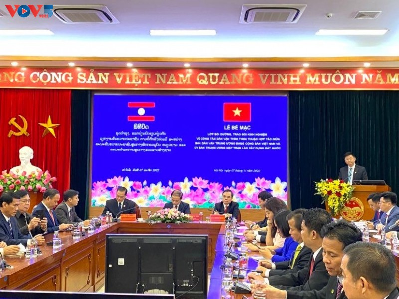 ຕອນເຊົ້າວັນທີ 07 ພະຈິກ, ຢູ່ຮ່າໂນ້ຍ, ຄະນະຂົນຂວາຍປະຊາຊົນສູນກາງ ສົມທົບກັບສະຖາບັນການເມືອງແຫ່ງຊາດ ໂຮ່ຈີມິນ ຈັດພິທີອັດຊຸດຝຶກອົບຮົມ, ບຳລຸງສ້າງພະນັກງານເຮັດວຽກງານຂົນຂວາຍປະຊາຊົນຂອງຄະນະກຳມະການສູນກາງແນວ ລາວ ສ້າງຊາດ ປີ 2022.