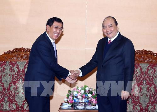 ທ່ານນາຍົກລັດຖະມົນຕີ ຫວຽດນາມ ຫງວຽນຊວນຝຸກ ຕ້ອນຮັບຜູ້ວ່າການທະນາຄານແຫ່ງ ສປປ ລາວ ສອນໄຊ ສິດພະໄຊ (ພາບ: TTXVN) |