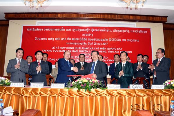 ພິທີເຊັນສັນຍາຮ່ວມມືຂຸດຄົ້ນ, ປຸງແຕ່ງແຮ່ເຫຼັກຢູ່ແຂວງ ໄຊສົມບູນ (ພາບ: KPL) |
