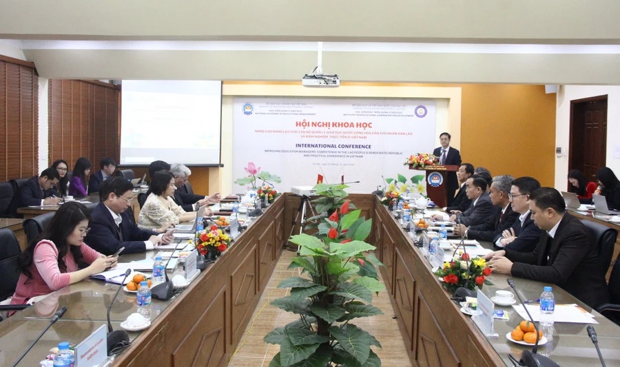 ຕອນເຊົ້າວັນທີ 20 ທັນວາ, ກອງປະຊຸມວິທະຍາສາດດ້ວຍຫົວຂໍ້ “ຍົກສູງຄວາມສາມາດໃຫ້ແກ່ພະນັກງານບໍລິຫານການສຶກສາ ສປປ.ລາວ ແລະ ບົດຮຽນຕົວຈິງຂອງ ສສ.ຫວຽດນາມ”, ຈັດຂຶ້ນຢູ່ສະຖາບັນຄຸ້ມຄອງການສຶກສາ, ທີ່ ຮ່າໂນ້ຍ. ກອງປະຊຸມໂດຍສະຖາບັນຄຸ້ມຄອງການສຶກສາ ຫວຽດນາມ ສົມທົບກັບສະຖາການພັດທະນາບໍລິຫານການສຶກສາ ລາວ ຈັດຂຶ້ນ.