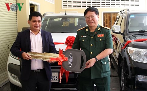 ເພື່ອແນໃສ່ສ້າງເງື່ອນໄຂສະດວກກ່ວາໃຫ້ແກ່ການເຄື່ອນໄຫວຂອງແນວໂຮມສາມັກຄີ, ພັດທະນາປະເທດ ກຳປູເຈຍ, ລັດຖະບານ ຫວຽດນາມ ໄດ້ຕົກລົງມອບໃຫ້ຝ່າຍ ກຳປູເຈຍ ລົດໂອໂຕ 3 ຄັນ ແລະ ຄອມພິວເຕີ 3 ຊຸດດ້ວຍຍອດມູນຄ່າເກືອບ 300.000 USD. ທ່ານ ຫງວຽນແອງຢູ້ງ, ທູດການທະຫານ ຫວຽດນາມ ປະຈຳ ກຳປູເຈຍ ໄດ້ຕາງໜ້າໃຫ້ລັດຖະບານ ຫວຽດນາມ ມອບຂອງຂວັນດັ່ງກ່າວໃຫ້ຝ່າຍ ກຳປູເຈຍ ແມ່ນທ່ານ Nhem Valy, ຮອງປະທານຜູ້ປະຈຳການແນວໂຮມສາມັກຄີ, ພັດທະນາປະເທດ ກຳປູເຈຍ.