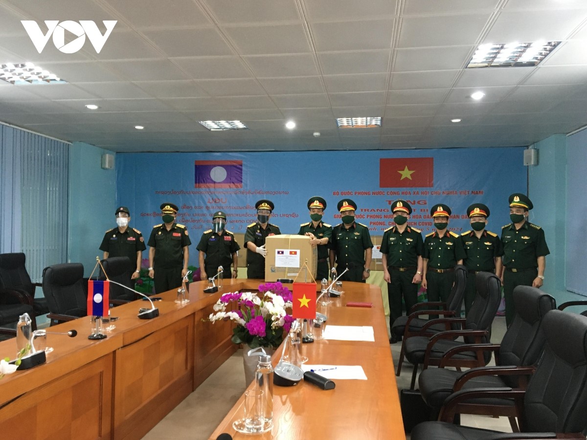 ໂດຍຕາງໜ້າໃຫ້ກະຊວງປ້ອງກັນປະເທດຫວຽດນາມ, ທ່ານພົນຈັດຕະວາ ຫວຽນຮຸ່ງທັ໊ງ, ຮອງຫົວໜ້າ - ເສນາທິການໃຫຍ່ກົມໃຫຍ່ພະລາທິການ, ໄດ້ມອບໃຫ້ຜູ້ຕາງໜ້າກະຊວງປ້ອງກັນປະເທດລາວ, ທ່ານພົນຕີ ຄຳເພັດ ສີຊານົນ, ຫົວໜ້າກົມໃຫຍ່ພະລາທິການກອງທັບປະຊາຊົນລາວ ຈຳນວນວັດຖຸປ້ອງກັນ, ສະກັດກັ້ນໂລກລະບາດ ລວມມີ: ຜ້າອັດປາກ-ອັດດັງ, CloraminB, ຊຸດປ້ອງກັນເຊື້ອພະຍາດລະດັບ 4, ຊຸດ kit ວິໄຈຫາເຊື້ອ SARS-CoV-2… ລວມຍອດມູນຄ່າ 3 ຕື້ດົ່ງ. ພ້ອມກັບເຄື່ອງວັດຖຸອຸປະກອນການແພດນັ້ນ, ກະຊວງປ້ອງກັນປະເທດຫວຽດນາມ ກໍ່ຈັດສົ່ງນັກຊ່ຽວຊານທີ່ມີປະສົບການໃນວຽກງານປ້ອງກັນ, ສະກັດກັ້ນໂລກລະບາດໂຄວິດ-19 4 ຄົນໄປຊ່ວຍກຳລັງເສນາຮັກກອງທັບລາວ ຜັນຂະຫຍາຍບັນດາວຽກງານກ່ຽວຂ້ອງເຖິງການປ້ອງກັນ, ສະກັດກັ້ນໂລກລະບາດໂຄວິດ-19. ກ່າວຄຳເຫັນທີ່ພິທີ, ທ່ານພົນຈັດຕະວາ ຫວຽນຮຸ່ງທັ໊ງ, ຢືນຢັນວ່າ.