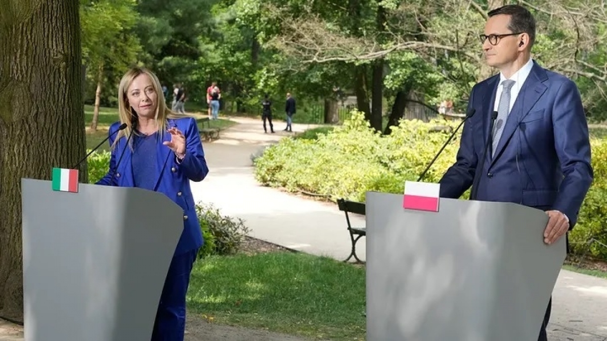 ທ່ານນາງນາຍົກລັດຖະມົນຕີ ອີຕາລີ Georgia Meloni ແລະ ທ່ານນາຍົກລັດຖະມົນຕີ ໂປໂລຍ Mateusz Morawiecki (ພາບ: foxnews) |