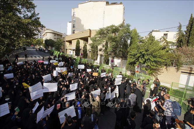 ປະຊາຊົນແຫ່ຂະບວນປະທ້ວງຄັດຄ້ານການກະທຳແຕະຕ້ອງຄຳພີ Koran, ຢູ່ນອກສະຖານທູດ ຊູແອັດ ປະຈຳ ອີຣານ (ພາບ: AFP/TTXVN) |