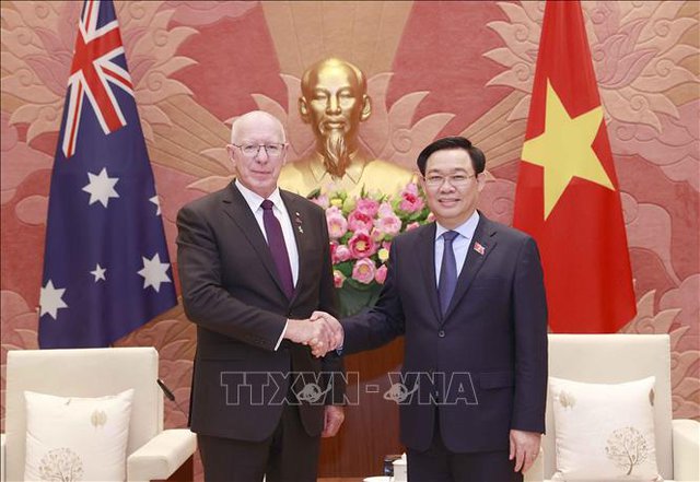 ຕອນບ່າຍວັນທີ 4 ເມສາ, ທີ່ຫໍປະຊຸມສະພາແຫ່ງຊາດ, ກ່າວຄຳເຫັນທີ່ການພົບປະກັບ ທ່ານ David Hurley, ຜູ້ມີອຳນາດເຕັມແຫ່ງ ອົດສະຕາລີ ພວມຢ້ຽມຢາມທາງລັດຖະກິດ ຢູ່ ຫວຽດນາມ, ທ່ານປະທານສະພາແຫ່ງຊາດ ເວືອງດິ່ງເຫວະ ຫວັງວ່າ: ຜູ້ມີອຳນາດເຕັມ ອົດສະຕາລີ ສືບຕໍ່ເອົາໃຈໃສ່, ຊຸກຍູ້ການພົວພັນຮ່ວມມືດ້ານປ້ອງກັນຊາດ - ປ້ອງກັນຄວາມສະຫງົບລະຫວ່າງສອງປະເທດ; ສືບຕໍ່ໜູນຊ່ວຍ ຫວຽດນາມ ໃນວິວັດການເຂົ້າຮ່ວມການຮັກສາສັນຕິພາບຂອງ ສປຊ. ຫວຽດນາມ ປາດຖະໜາຢາກໃຫ້ສອງຝ່າຍຊຸກຍູ້ດ້ານການຄ້າແບບຍືນຍົງ, ດຸ່ນດ່ຽງ, ສ້າງເງື່ອນໄຂໃຫ້ຜະລິດຕະພັນກະເສດຫຼາຍປະເພດຂອງ ຫວຽດນາມ ສົ່ງໄປຍັງ ອົດສະຕາລີ ແລະ ກົງກັນຂ້າມ.
