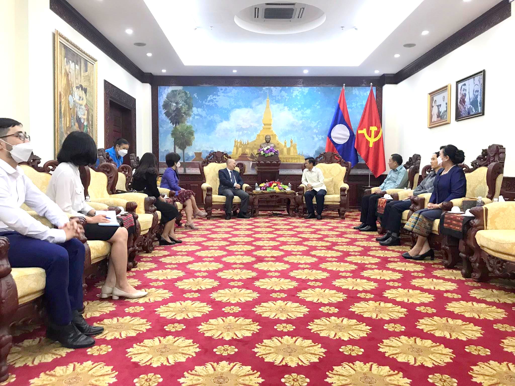 ເນື່ອງໃນໂອກາດນີ້, ຕາງໜ້າ VOV5 ກໍໄດ້ມອບຂອງຂວັນອວຍພອນປີໃໝ່ລາວ 2022.