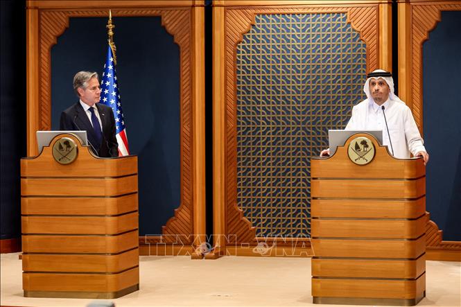 ທ່ານລັດຖະມົນຕີການຕ່າງປະເທດ ອາເມລິກາ Antony Blinken ແລະ ຄູຕຳແໜ່ງ ກາຕາ Sheikh Mohammed bin Abdulrahman bin Jassim al-Thani(ພາບ: TTXVN) |