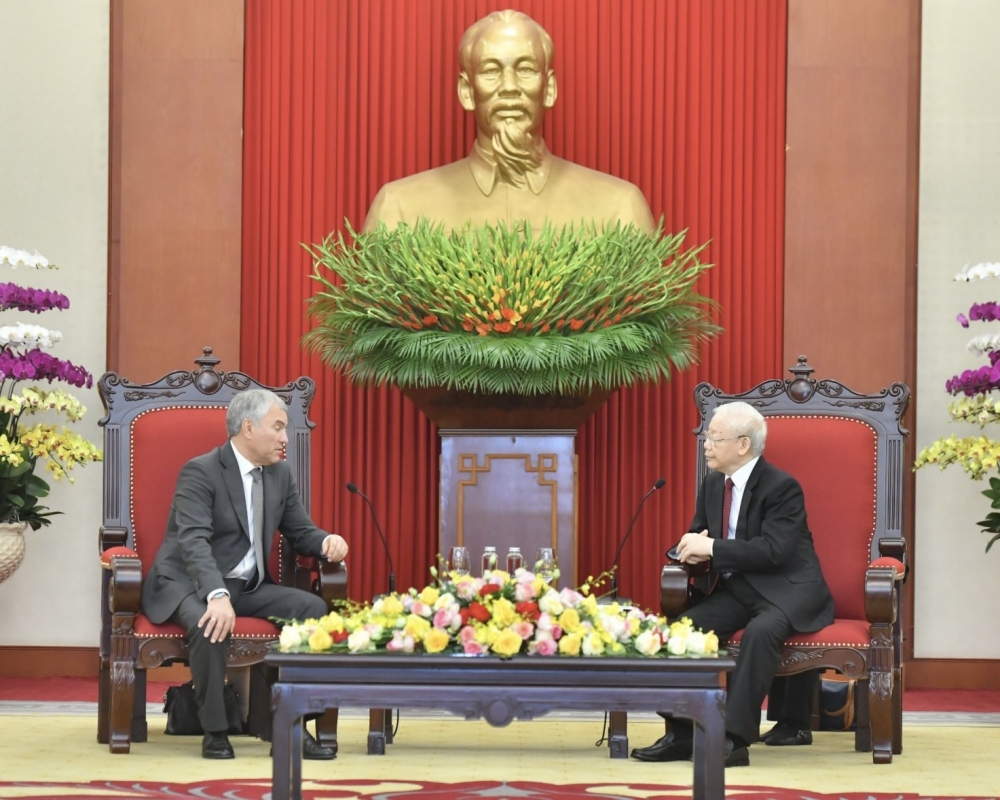ທ່ານເລຂາທິການໃຫຍ່ ຫງວຽນຝູຈ້ອງ ແລະ ທ່ານ Vyacheslav Viktorovich Volodin, ປະທານ ດູມາ ແຫ່ງຊາດສະຫະພັນລັດເຊຍ |