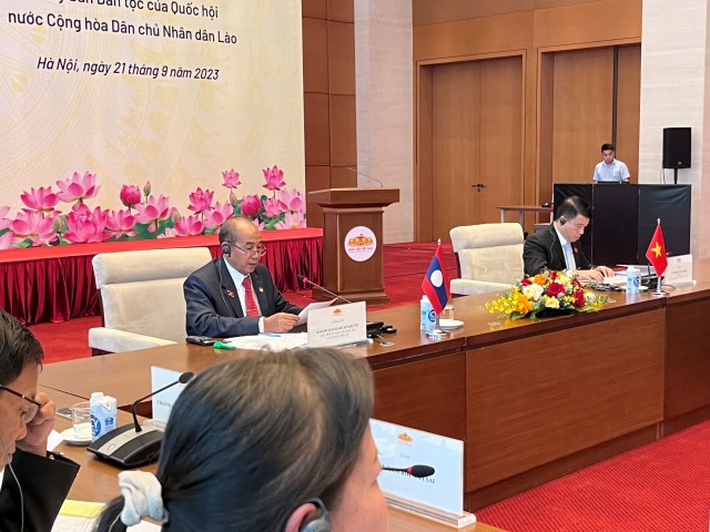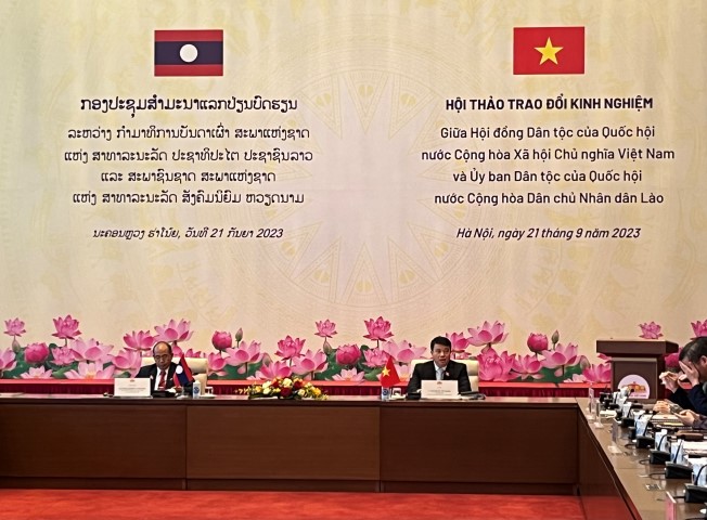 ໃນຂອບເຂດການຢ້ຽມຢາມ ຫວຽດນາມ ຂອງຄະນະປະຕິບັດງານກຳມາທິການບັນດາເຜົ່າສະພາແຫ່ງຊາດ ລາວ (ແຕ່ວັນທີ 20-25 ກັນຍາ), ຕອນບ່າຍວັນທີ 21 ກັນຍາ, ຢູ່ຫໍສະພາແຫ່ງຊາດ, ສະພາຊົນຊາດສະພາແຫ່ງຊາດ ຫວຽດນາມ ໄດ້ສົມທົບກັບກຳມາທິການບັນດາເຜົ່າສະພາແຫ່ງຊາດ ລາວ ຈັດກອງປະຊຸມແລກປ່ຽນບົດຮຽນລະຫວ່າງ 2 ອົງການ ເພື່ອແນໃສ່ເປັນເສນາທິການກ່ຽວກັບການ ສ້າງ, ຕິດຕາມກວດກາ, ຜັນຂະຫຍາຍບັນດານະໂຍບາຍ, ກົດໝາຍກ່ຽວກັບວຽກງານຊົນເຜົ່າ, ການກໍ່ສ້າງຊົນນະບົດໃໝ່, ການຫຼຸດຜ່ອນຄວາມທຸກຍາກແບບຍືນຍົງ ແລະ ການອະນຸລັກຮັກສາ, ເສີມຂະຫຍາຍບັນດາຄຸນຄ່າວັດທະນະທຳບັນດາເຜົ່າສ່ວນໜ້ອຍ. ທ່ານປະທານສະພາຊົນຊາດສະພາແຫ່ງຊາດ ຫວຽດນາມ ອີແທງຮ່ານີເອີກະດຳ ແລະ ທ່ານປະທານກຳມາທິການບັນດາເຜົ່າສະພາແຫ່ງຊາດ ລາວ ຄຳຈັນ ໂສຕາປະເສີດ ເປັນປະທານຮ່ວມທີ່ກອງປະຊຸມ, ພ້ອມກັບການເຂົ້າຮ່ວມຂອງບັນດາຜູ້ຕ່າງໜ້າປະຈຳການຂອງ ສະພາຊົນຊາດ ແລະ ກຳມາທິການສະພາແຫ່ງຊາດ; ບັນດາຜູ້ແທນສະເພາະກິດ ແລະ ຜູ້ແທນທີ່ເປັນສະມາຊິກ ສະພາຊົນຊາດ; ຄະນະປະຕິບັດງານຢູ່ບັນດາທ້ອງຖິ່ນທີ່ມີເສັ້ນຊາຍແດນຮ່ວມລະຫວ່າງ ຫວຽດນາມ - ລາວ.